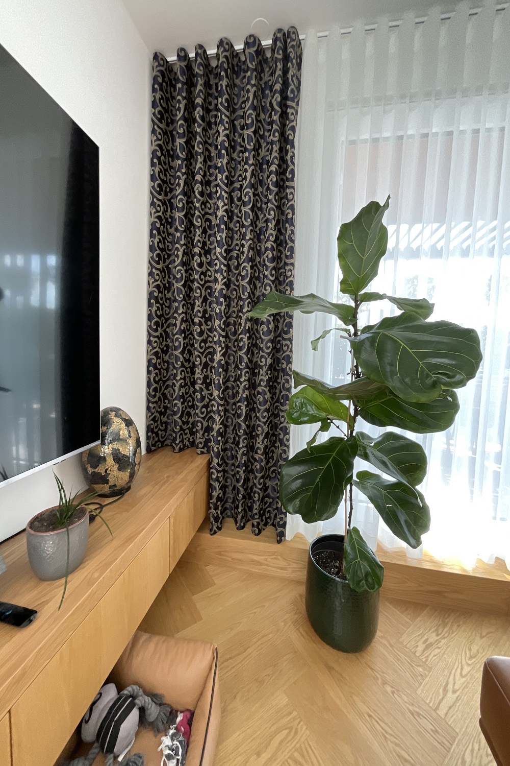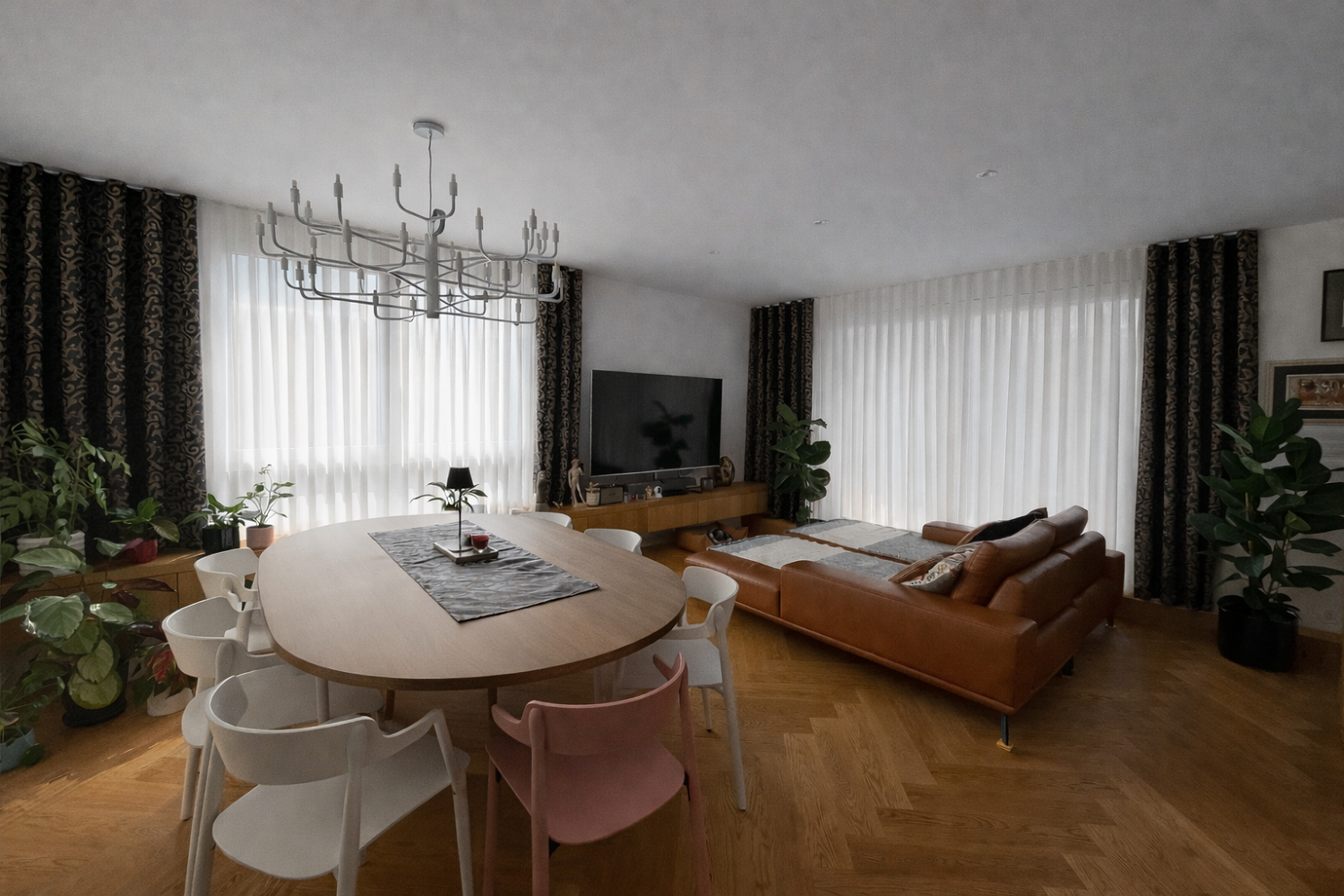 Ta projekt odlično prikazuje, kako lahko z izbiro lahkotne Voile tkanine in valovitim kroj zaves ustvarimo občutek prostornosti, mirnosti in sodobne elegance. Zavese so postale nepogrešljiv del interierja – ne le zaradi svoje funkcionalnosti, temveč tudi zaradi pomembne dekorativne vloge, ki stanovanje povezuje v celoto.